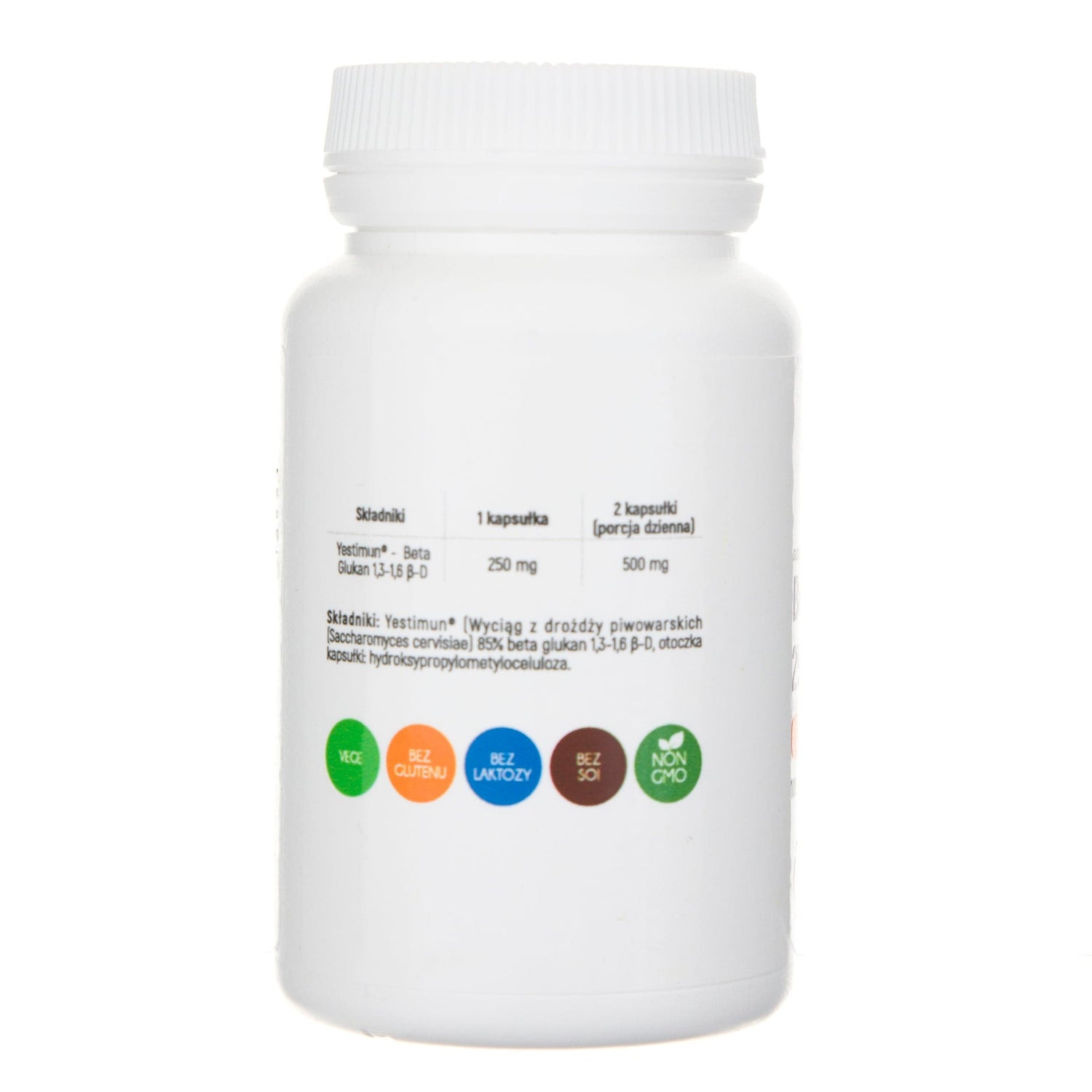 Beta Glucano 1 , 3-1 , 6 β-D capsula vegetale integratore alimentare da Aliness . Contiene Yestimun ® - Beta Glucano. Yestimun ® Beta-Glucano è un ingrediente completamente naturale e puro, senza additivi. È costituito esclusivamente da lievito di birra ( 100% Saccharomyces cerevisiae ) .