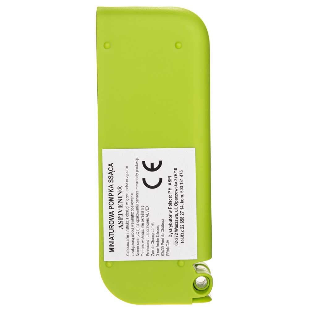 Aspivenin prodotto dalla società francese ASPILABO è una pompa di aspirazione in miniatura che crea un vuoto di circa 0,75 Atm nel punto di applicazione e quindi rimuove in modo indolore e non invasivo tutti i veleni e le tossine.