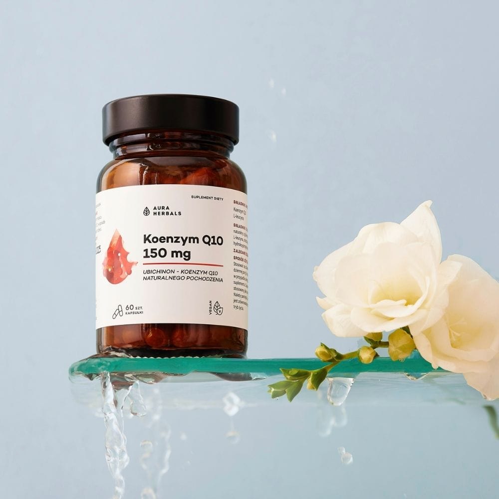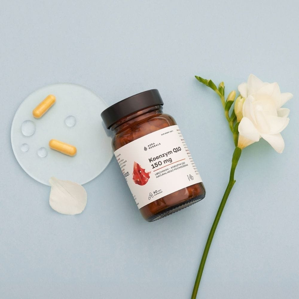 Aura Herbals Coenzima Q10 è un integratore alimentare in capsule vegetali. Contiene coenzima Q10 naturale (ubichinone) da glucosio di mais. Ogni capsula fornisce 150 mg di coenzima Q10.