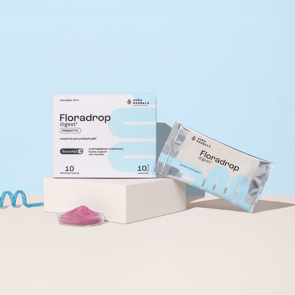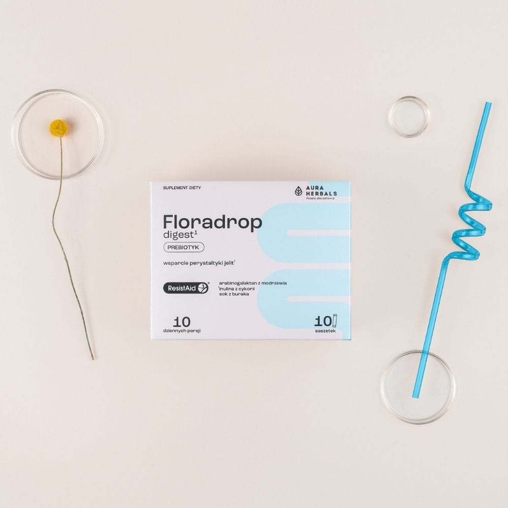 Aura Herbals Floradrop digest è un integratore alimentare in polvere in comode bustine. Una fonte naturale di prebiotici . Contiene estratto di larice americano di marca (Larix laricina) standardizzato all'85% di arabinogalattano (ResistAid ®). Con aggiunta di inulina di cicoria e succo di barbabietola.