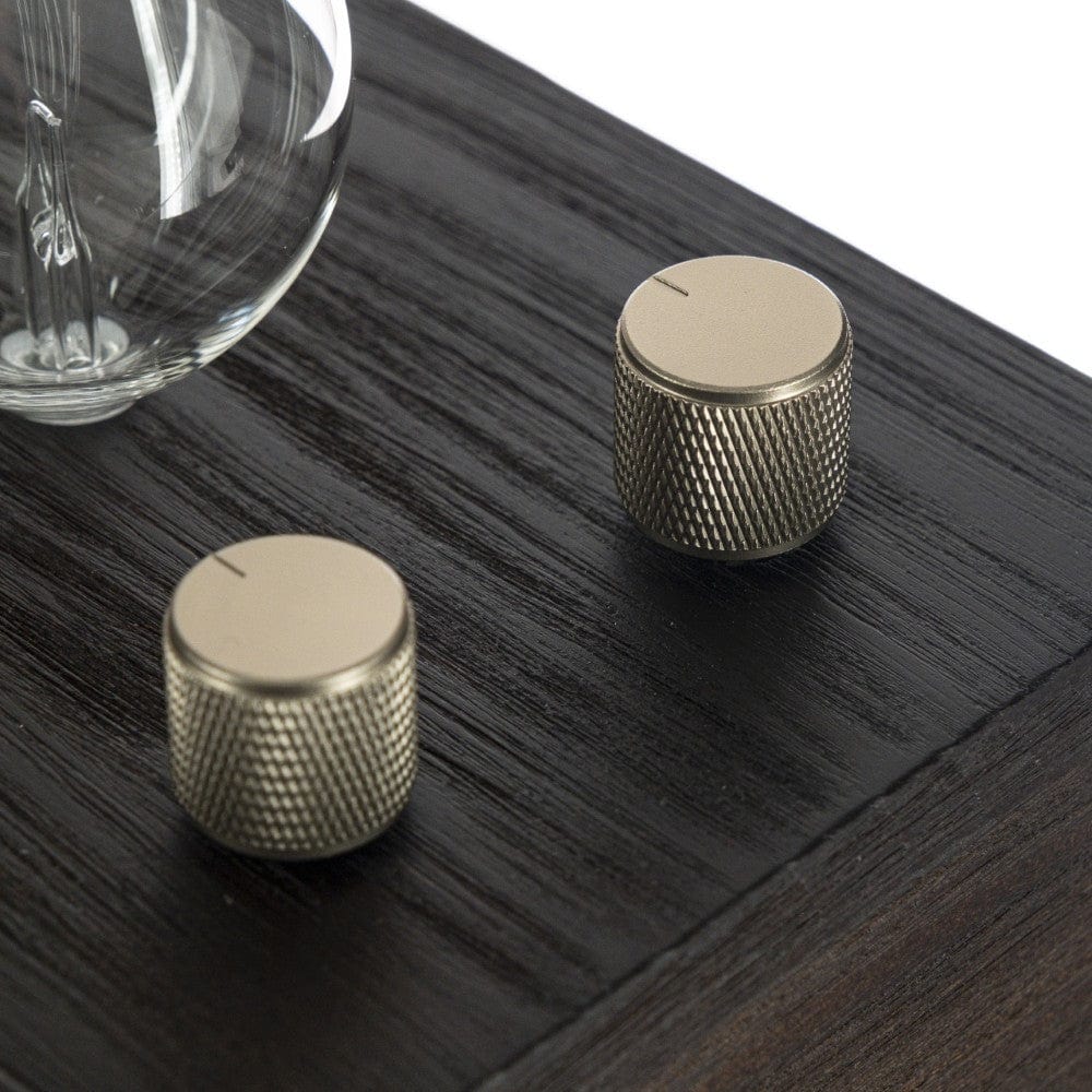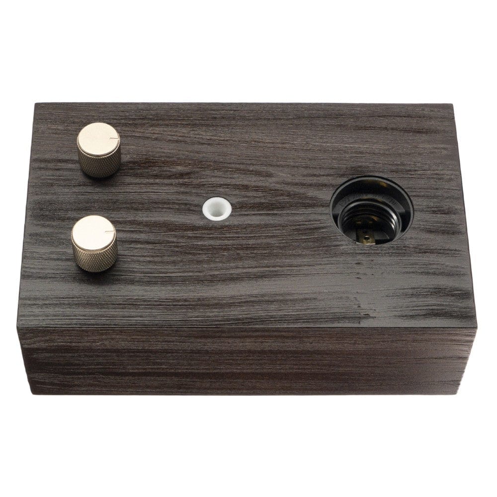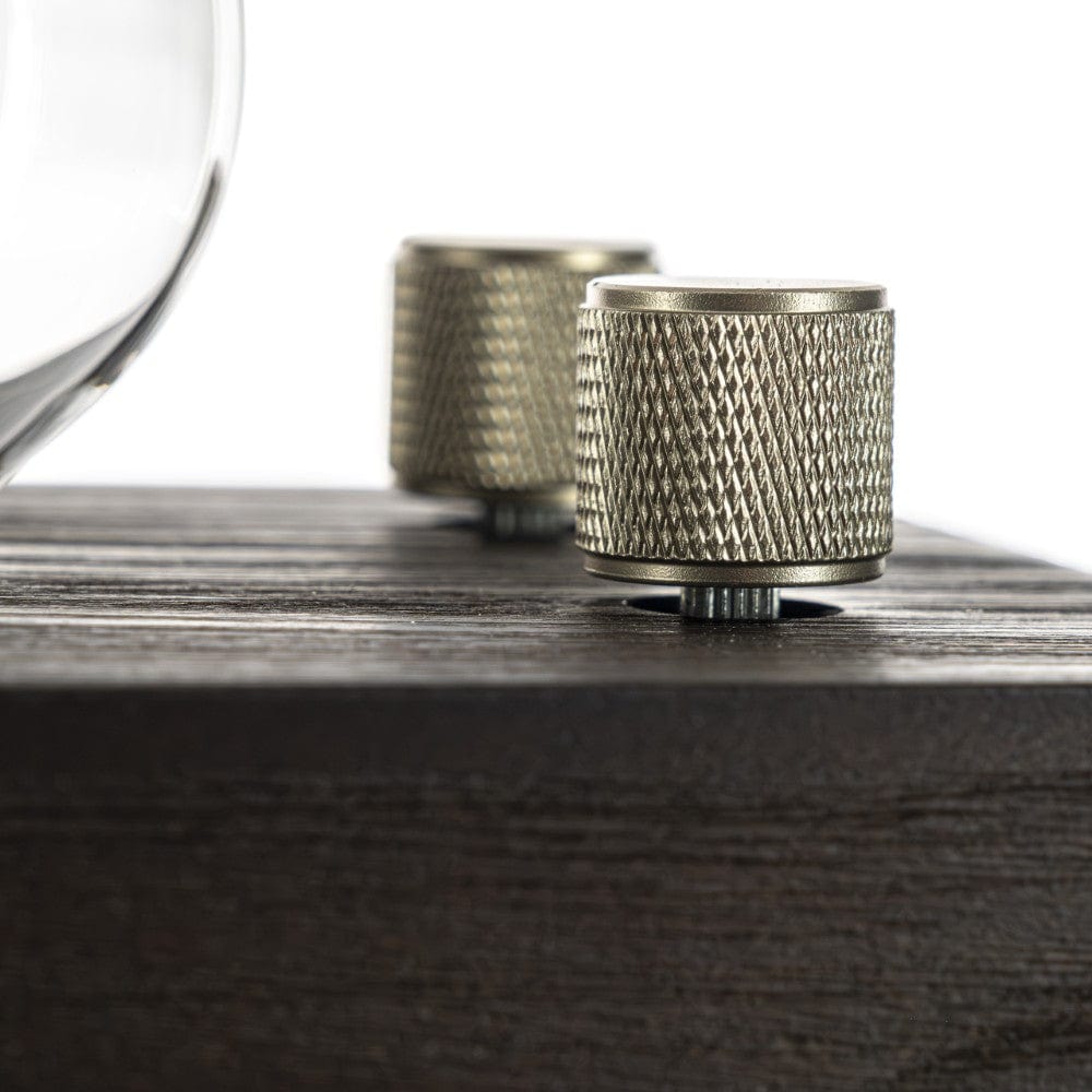 - Una base in legno di pino , una bottiglia di vetro, una lampadina e manopole in metallo: resistenza ed eleganza in un unico prodotto.