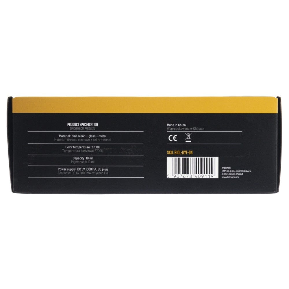 Il nebulizzatore di oli essenziali con bulbo di Bilovit è un'aggiunta elegante a qualsiasi interno, che combina funzionalità e design moderno. Realizzato in legno di pino, vetro e metallo, , cattura lo sguardo con il suo aspetto raffinato, e il bulbo regolabile crea un'atmosfera calda, e accogliente.