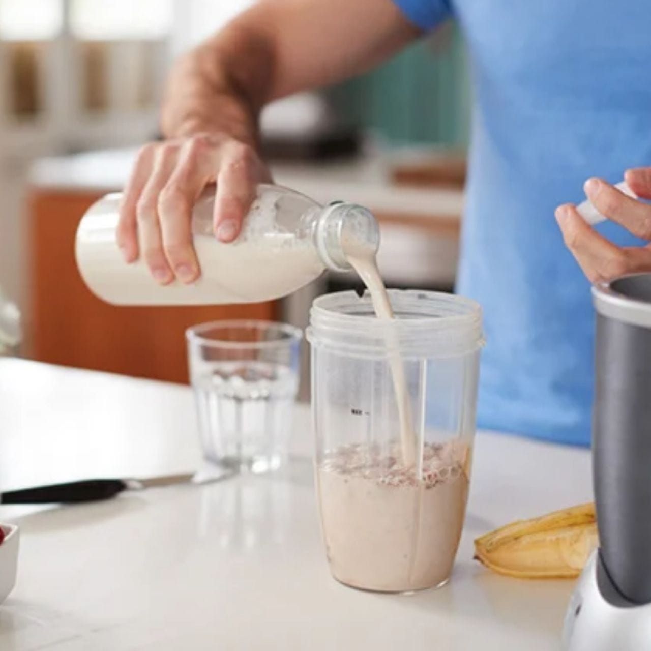 Whey protein isolate (milk) {whey protein isolate (milk), emulsifier [lecithins (soya)]} 88%, L-glutamine 5.0%, flavourings, acids (malic acid, citric acid), creaming mixture [partially hydrogenated coconut fat, skimmed milk powder, emulsifiers (E471, E472a), glucose syrup, sugar, milk protein, stabiliser (potassium phosphates)], thickeners (cellulose gum, xanthan gum), salt, anti-caking agent (silicon dioxide), L-leucine1 0.2%, sweetener (sucralose), L-isoleucine1 0.1%, L-valine1 0.1%, colours (tartrazine, Allura Red AC). Tartrazine and Allura Red AC: May have an adverse effect on activity and attention in children.