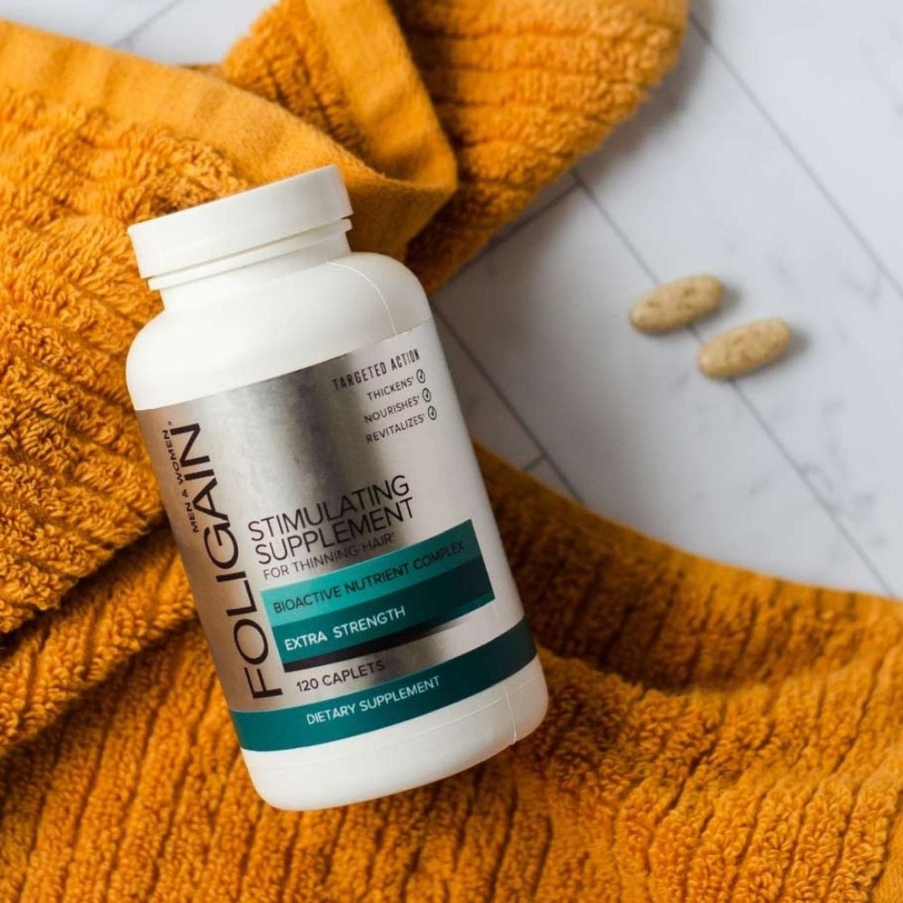Foligain Stimulating Supplement è un integratore alimentare in capsule. Contiene un potente complesso bioattivo di super-nutrienti, , tra cui ingredienti chiave come biotina, vitamine del gruppo B, rame e ginseng.
