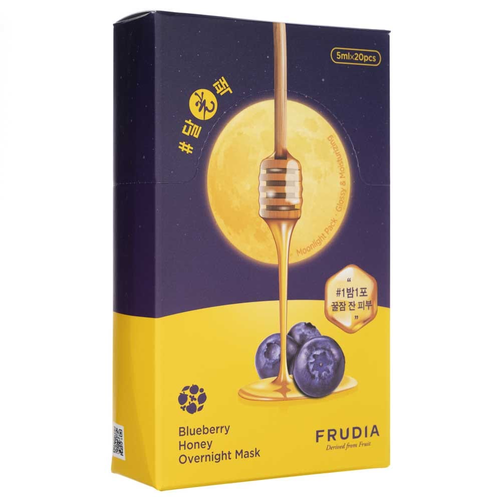 Frudia Blueberry Honey Overnight Mask è una maschera notturna nutriente, a base di estratto di mirtillo idratante che ammorbidisce, leviga e lenisce la pelle. Inoltre, questo prodotto è arricchito con burro di karité nutriente e betaina fortemente idratante per fornire una cura completa. Il set contiene 20 maschere .