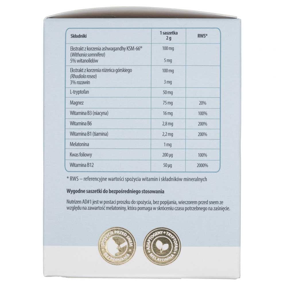Nutrizen AD 1 è un integratore alimentare contenente un complesso accuratamente selezionato di adattogeni, triptofano e melatonina, arricchito con vitamine del gruppo B e magnesio, che aiuta a mantenere le normali funzioni psicologiche, ad addormentarsi più velocemente e a ridurre la sensazione di stanchezza.