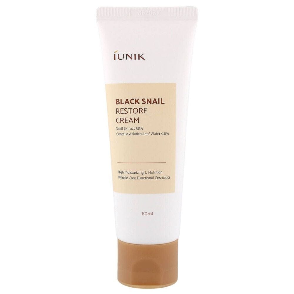 IUNIK Black Snail Restore Cream è una crema ricostituente concentrata con filtrato di muco di lumaca. Idrata efficacemente, rigenera e supporta i processi di riparazione della pelle, riducendo al contempo le discromie e le linee sottili.