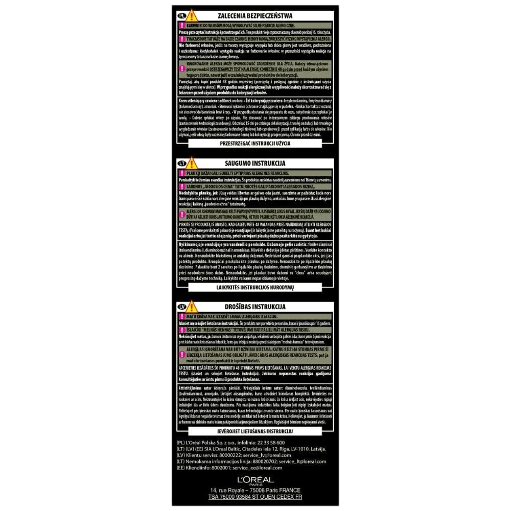 1242554 - Aqua / Acqua, Trideceth-2 Carboxamide MEA, Glicole propilenico, Glicole esilenico, PEG-2 Oleamina, Poligliceril-4 Oleil Etere, Idrossido di ammonio, Alcool oleilico, Alcool Denat., Poligliceril-2 Oleil Etere, Acido Oleico, Sodio Dietilaminopropil Cocoaspartamide,2,4-Diaminofenossietanolo HCl, m-Aminofenolo, Sodio Metabisolfito, Idrossipropil Bis (N-Idrossietil-p-Fenilendiammina) HCl, Acetato di ammonio, p-Fenilendiammina, Resorcinolo, EDTA, Acido Eritorbico, Parfum / Fragranza (F.I.L. C234324/1).