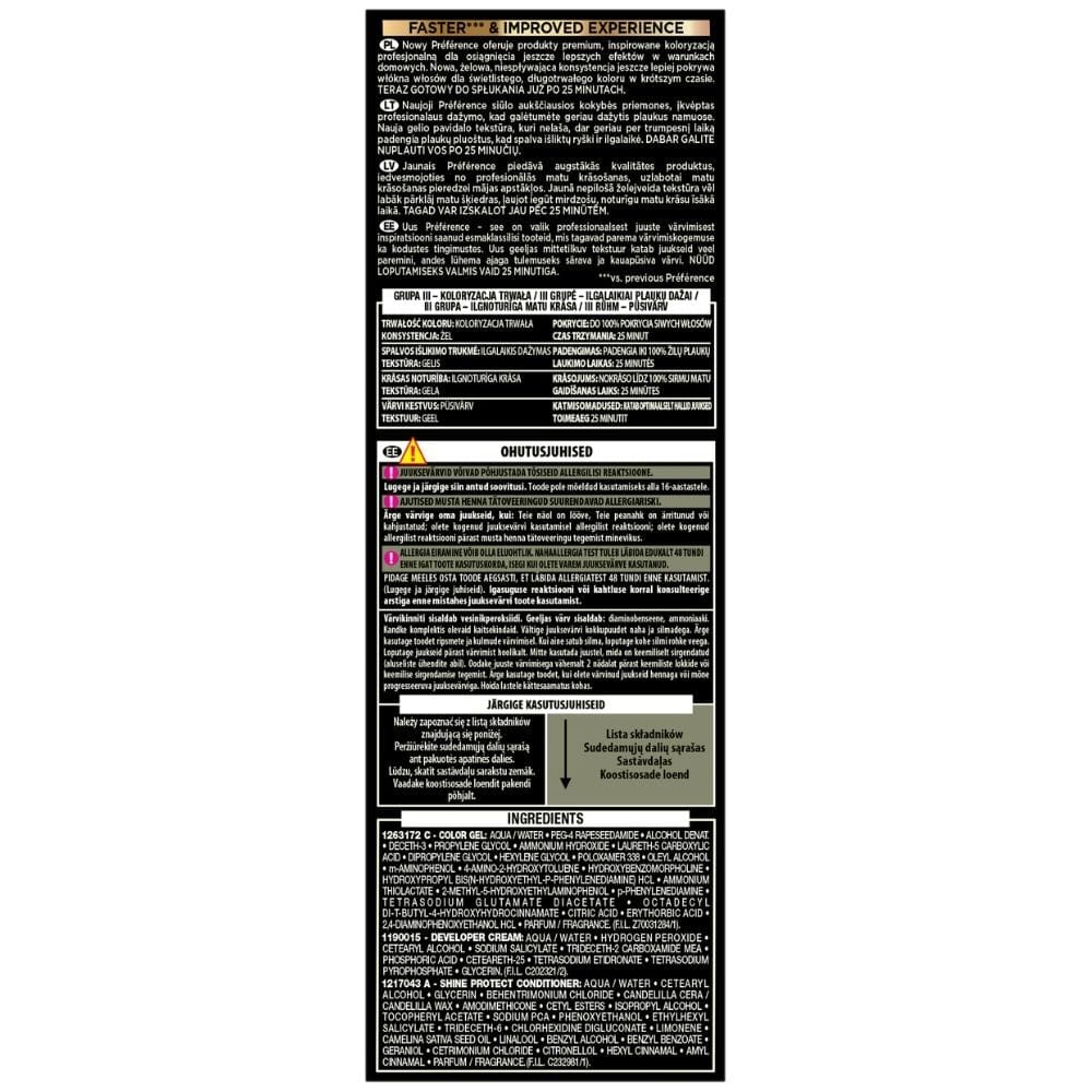 L'Oréal Paris Preference è un colore permanente avanzato per capelli che offre risultati professionali a casa. La nuova formula include un sistema anti-sbiadimento, che fornisce fino a 8 settimane di colore intenso, lucido ed espressivo.