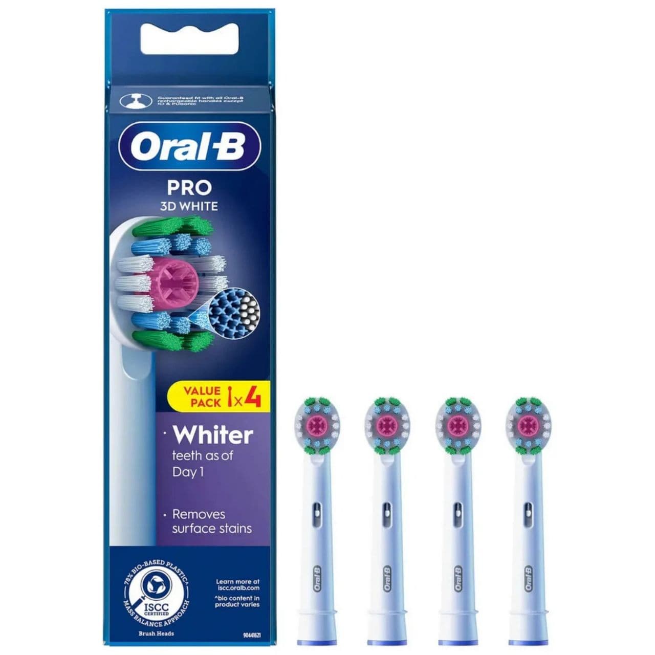 Oral-B Heads 3D White Electric Toothbrush Heads, White - 4 Pieces