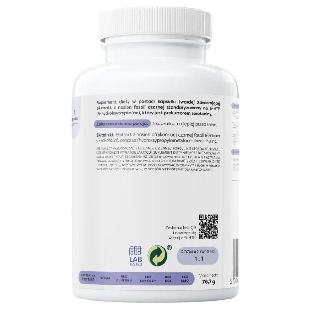 Osavi 5-HTP è un integratore alimentare in capsule. Contiene estratto di semi di fagiolo nero standardizzato a 5-HTP, (5-idrossitriptofano,), un precursore della serotonina.