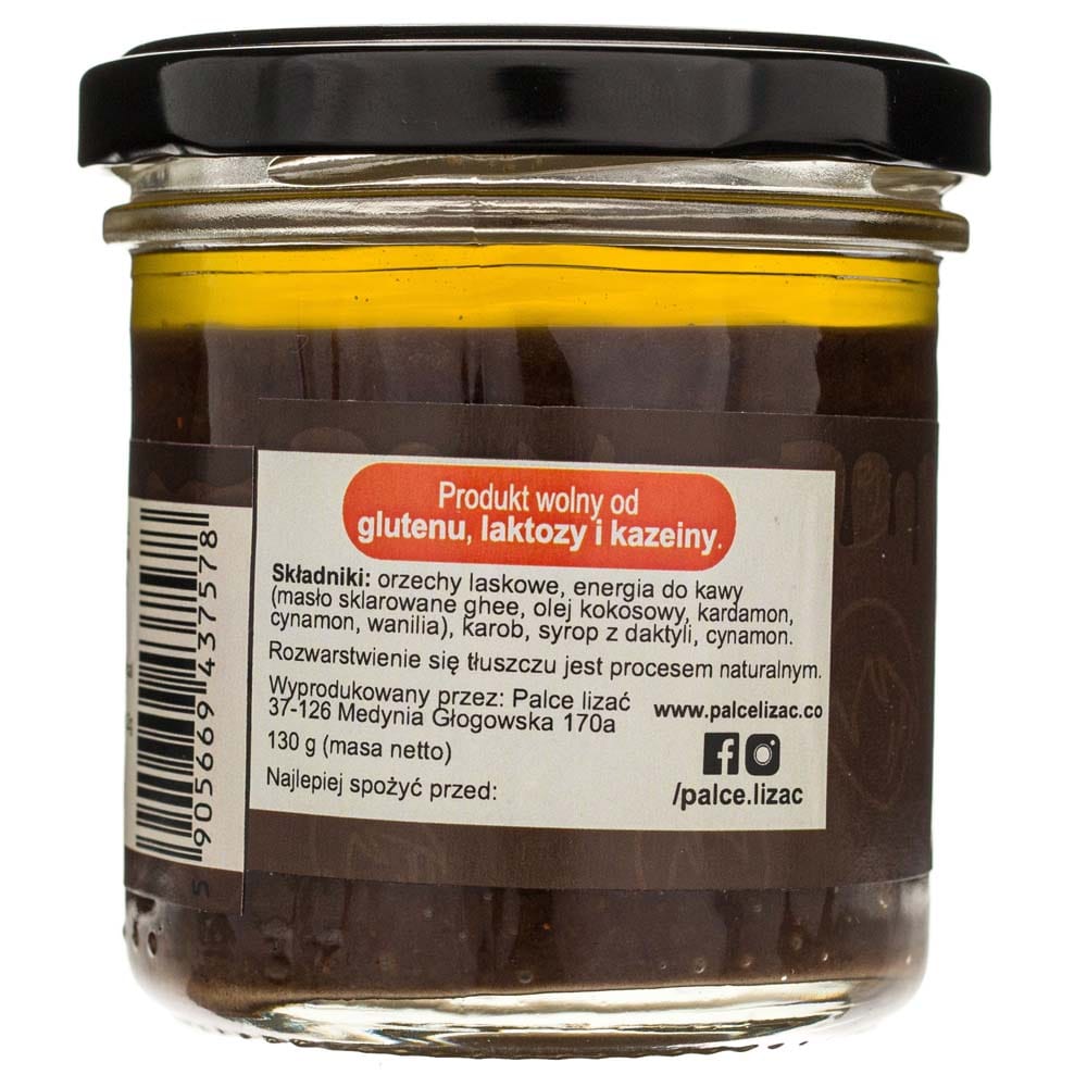 Nocciole, caffè energetico (burro ghee chiarificato, olio di cocco, cardamomo, cannella, vaniglia), carruba, sciroppo di datteri e cannella.