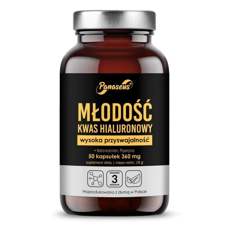 L'integratore Youth di Panaseus è una combinazione di acido ialuronico con ulteriori principi attivi. L'acido ialuronico è una sostanza naturalmente presente nella pelle, degli occhi e nelle articolazioni. La sua funzione principale è quella di trattenere l'acqua nelle cellule del corpo, per questo è uno dei più importanti elementi costitutivi del liquido sinoviale e della cartilagine vitrea.