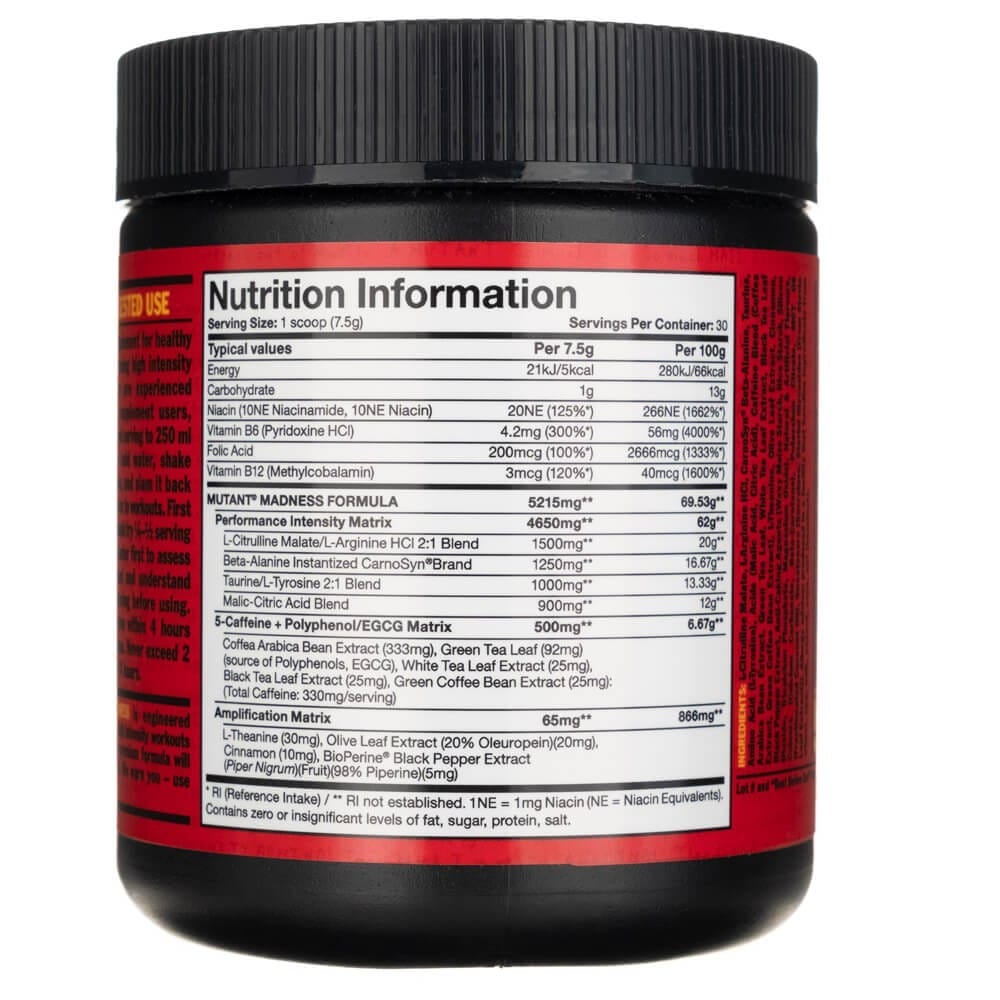 PVL Mutant Madness è un integratore alimentare in polvere formulato per gli allenamenti più intensi. Mutant Madness contiene arginina, citrullina, beta-alanina e altri ingredienti di qualità superiore per supportare al meglio ogni allenamento.