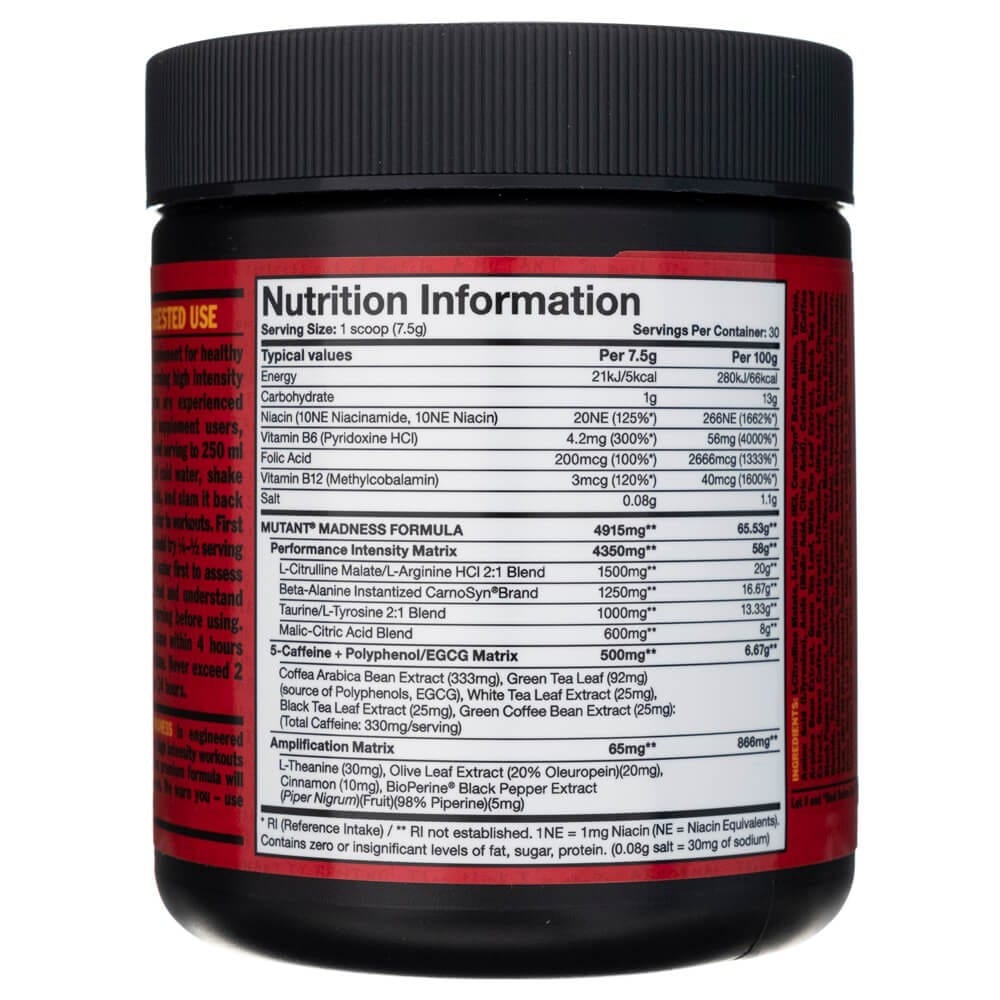 PVL Mutant Madness è un integratore alimentare in polvere formulato per gli allenamenti più intensi. Mutant Madness contiene arginina, citrullina, beta-alanina e altri ingredienti di qualità superiore per supportare al meglio ogni allenamento.