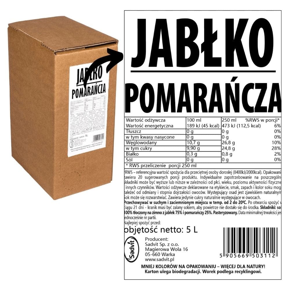 Il succo di mela e arancia DRINKME è una bevanda 100% naturale che unisce la dolcezza delle mele locali della regione di Grójec alla freschezza del succo d'arancia. Spremuto a freddo, senza additivi né concentrati, conserva tutto il sapore e il valore nutrizionale della frutta.