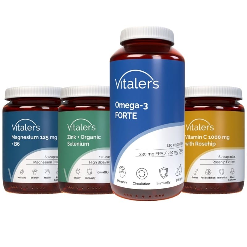 Vitaler's Set per la mamma è la combinazione perfetta di ingredienti che favoriscono la salute, l'energia e la bellezza . Magnesio, Vitamina C con rosa canina, Zinco + Selenio e Omega-3 Forte assicurano vitalità, pelle bella e capelli sani. La sua composizione naturale senza additivi lo rende un regalo perfetto che dimostrerà la tua attenzione per la donna più importante della tua vita.