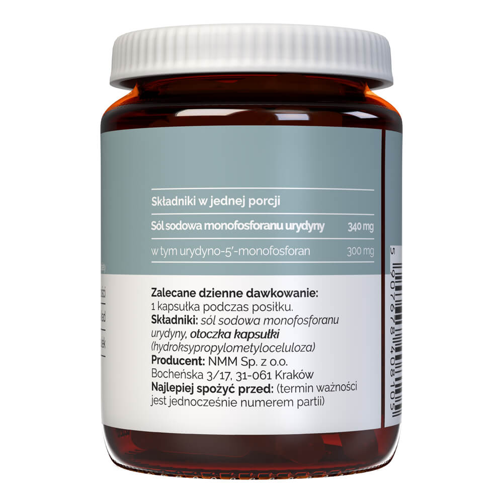 Vitaler's Uridina è un integratore alimentare per adulti che contiene uridina monofosfato 300 mg. L'uridina, o UMP (uridina-5′-) -monofosfato, è una sostanza in grado di attraversare la barriera emato-encefalica, che è anche un precursore nella produzione di fosfatidilcolina e un substrato per la CDP-colina.