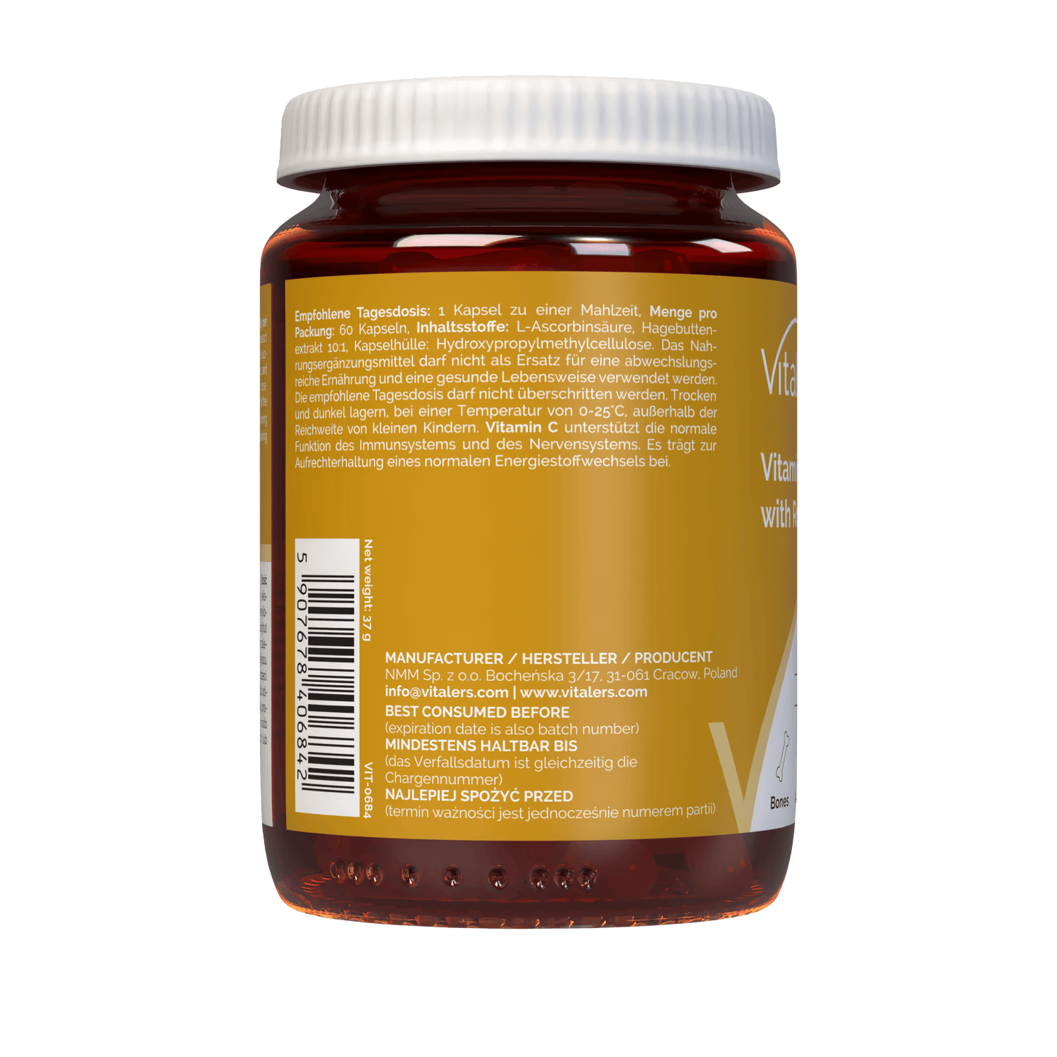 Vitamina C con rosa canina di Vitaler's è un integratore alimentare in capsule vegane. La vitamina C contribuisce al corretto funzionamento del sistema immunitario e nervoso , contribuisce al mantenimento del normale metabolismo energetico e alla riduzione del senso di stanchezza e affaticamento.